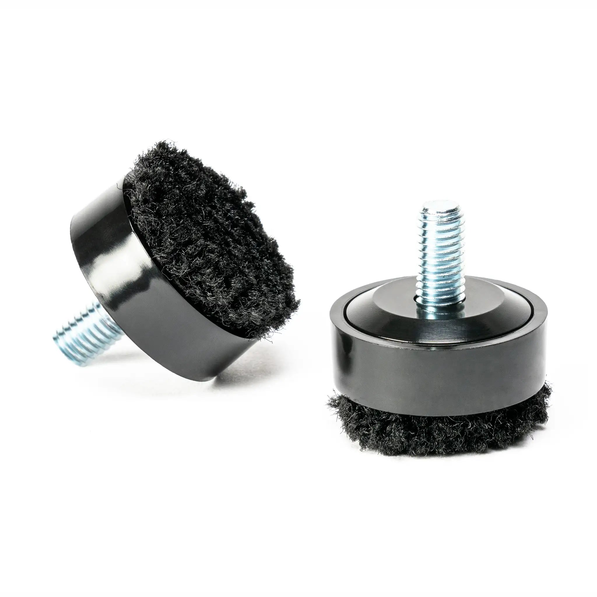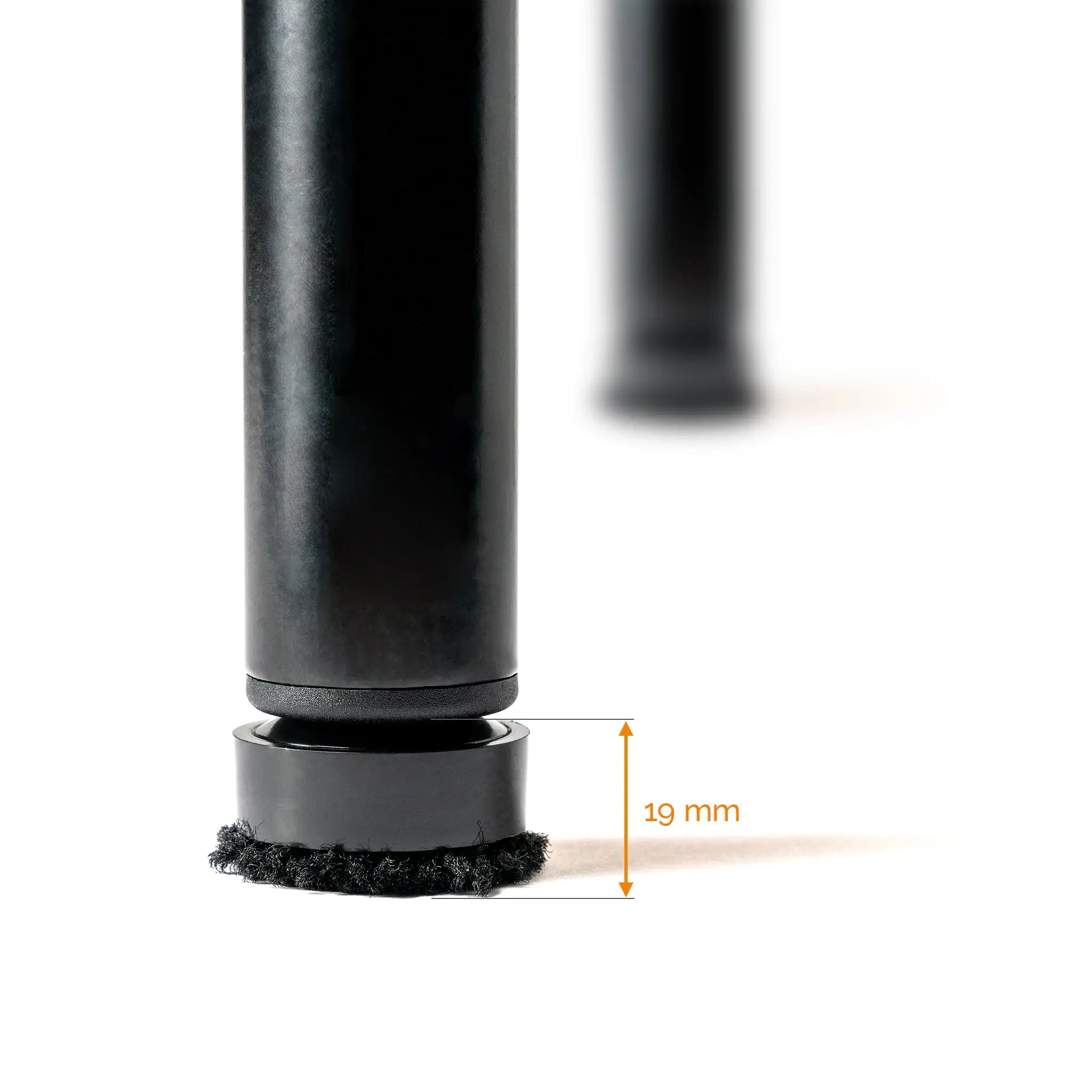 Height-adjustable threaded furniture glide for straight threaded furniture legs. For use under threaded tables or desks.