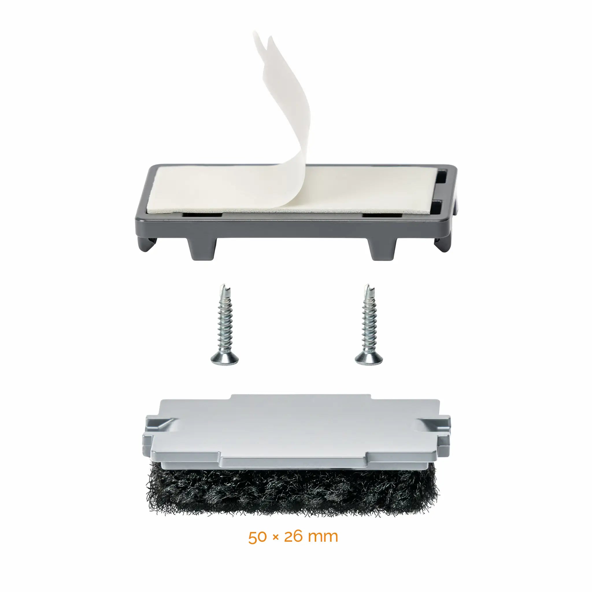 Universell einsetzbarer Möbelgleiter mit den Maßen 50 × 26 mm für Freischwinger mit Vierkantrohr oder Flachrohr sowie andere ebene Flächen.