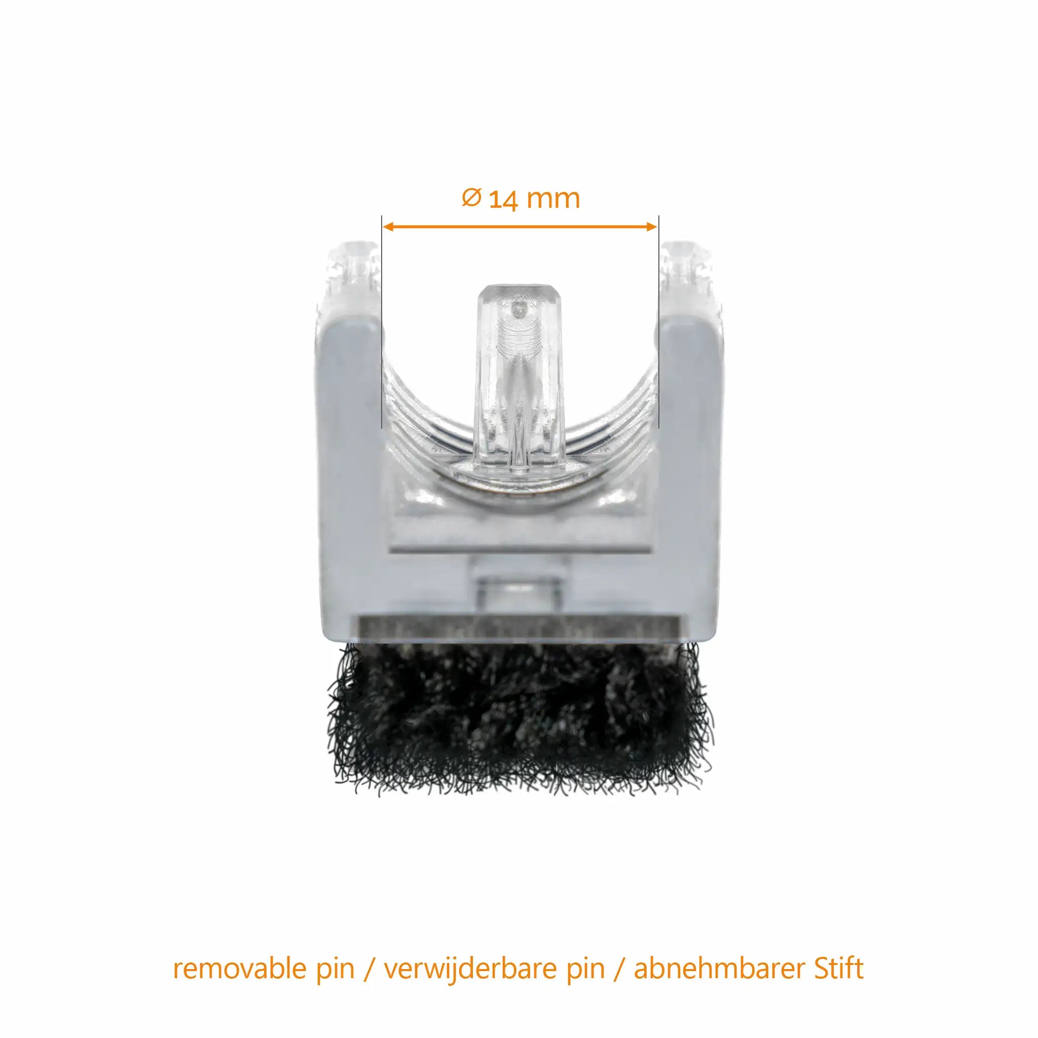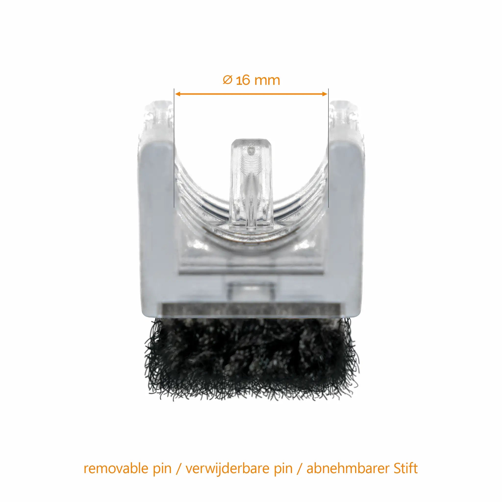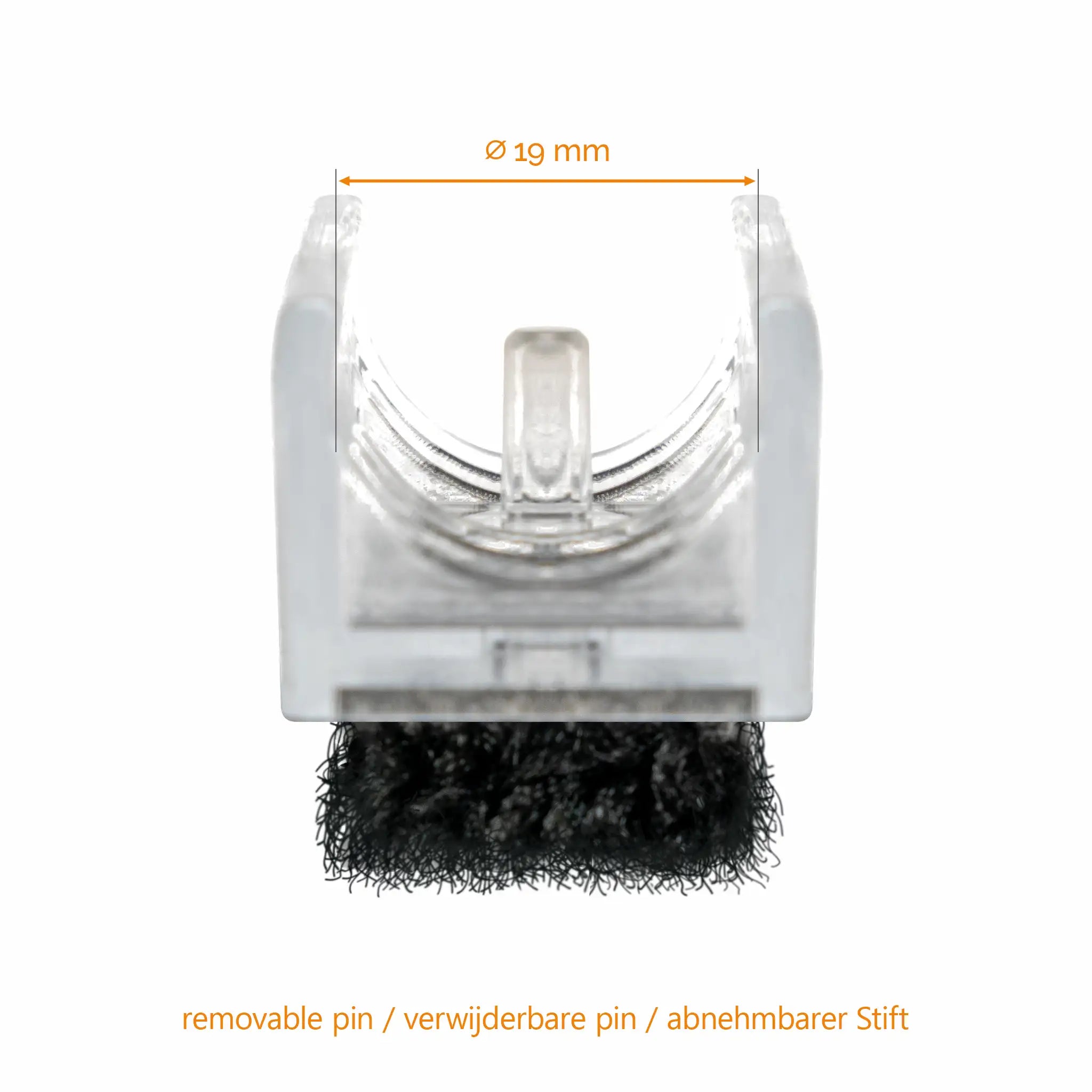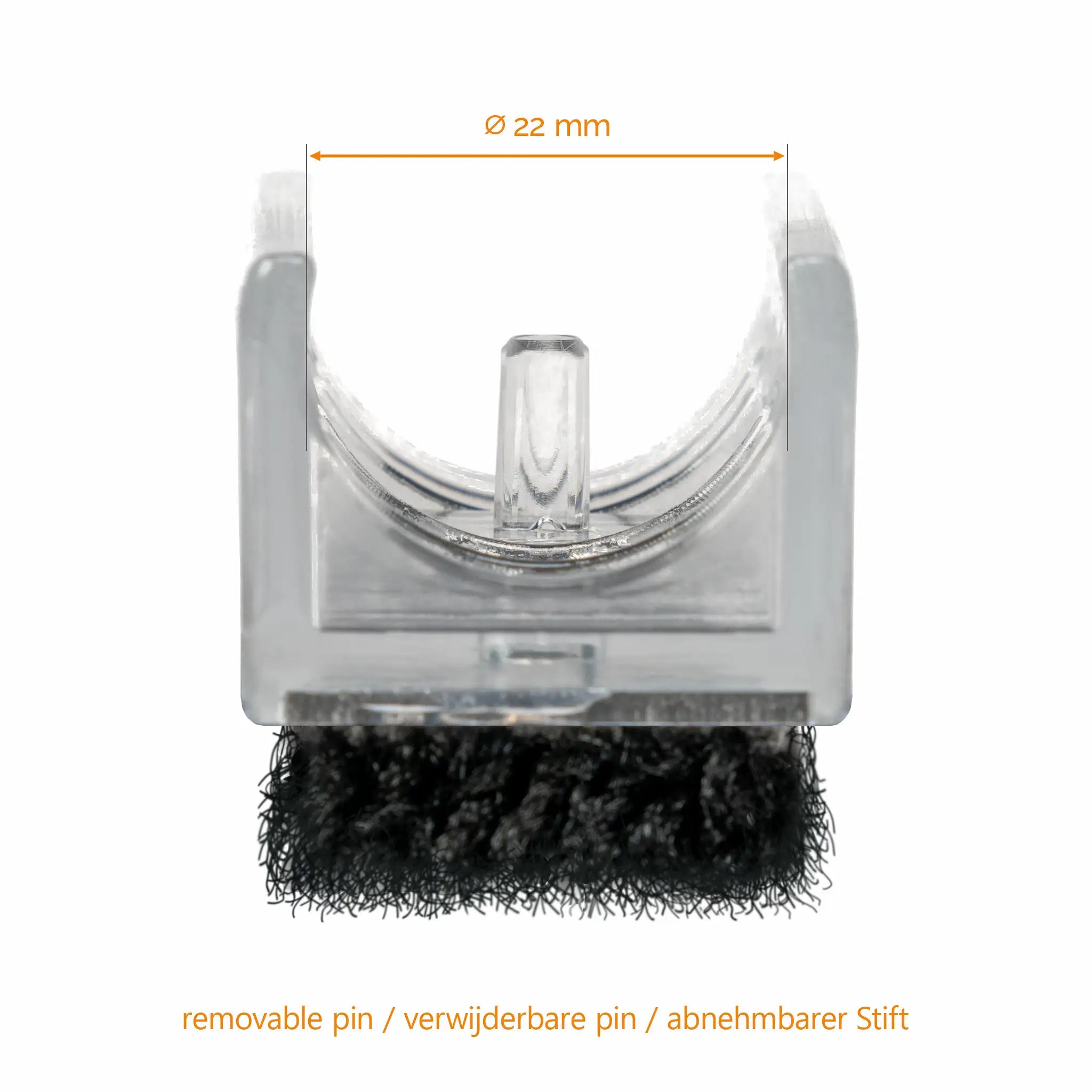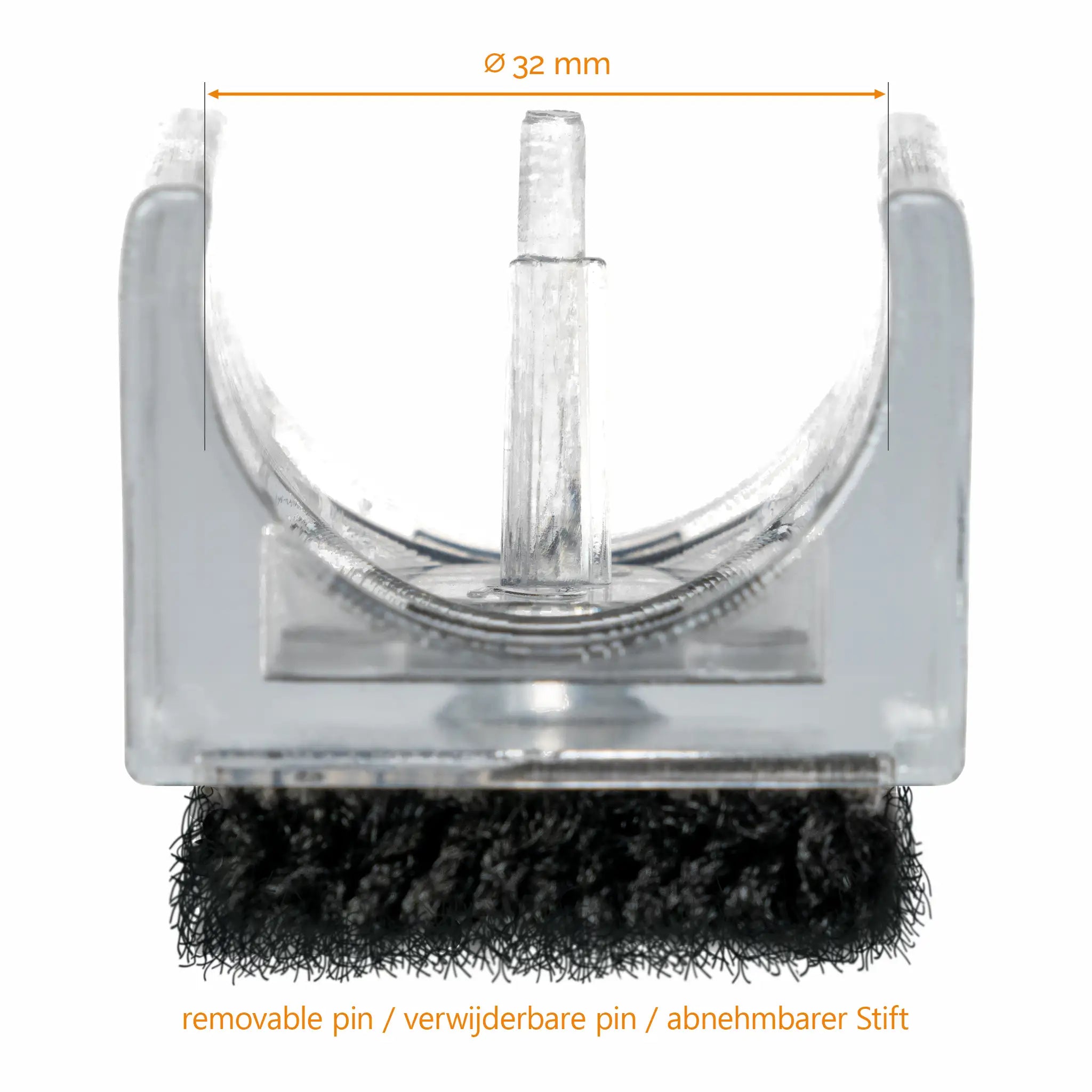 Klemmschalengleiter für Freischwinger mit Rundrohrgestell in einem Durchmesser von 11 bis 32 mm.