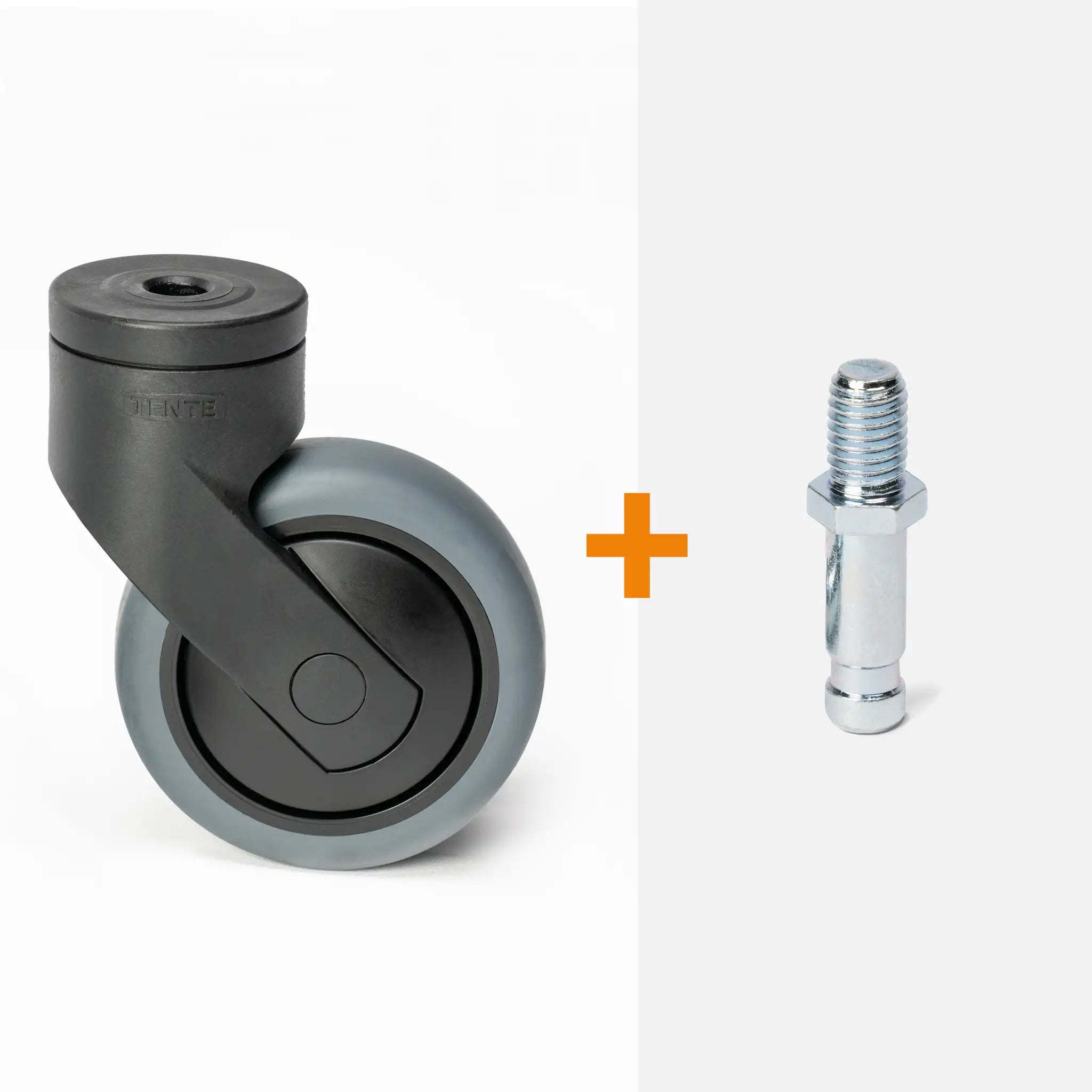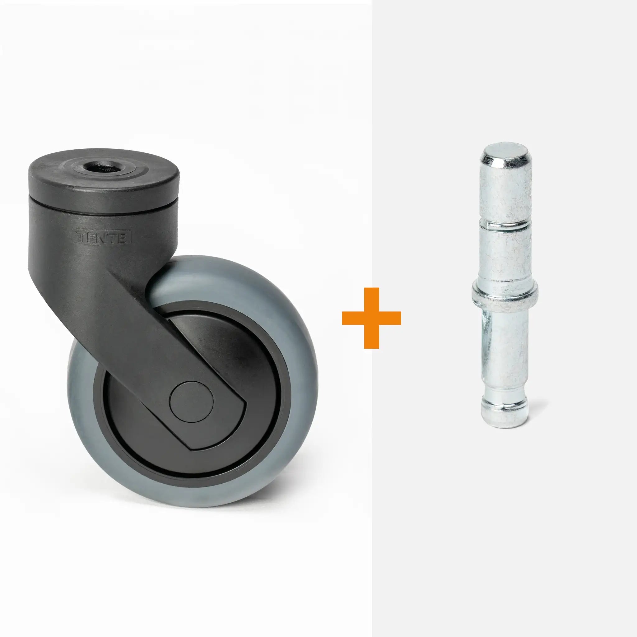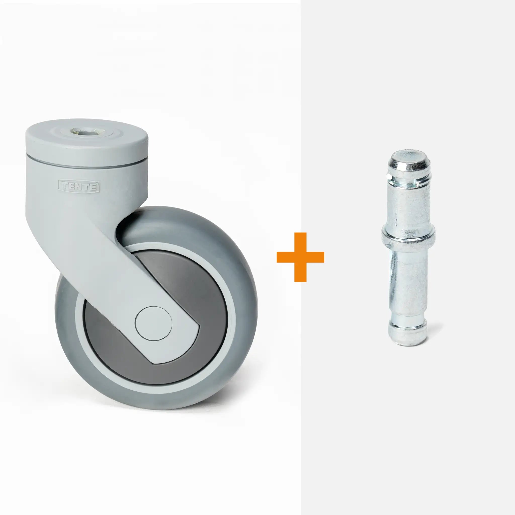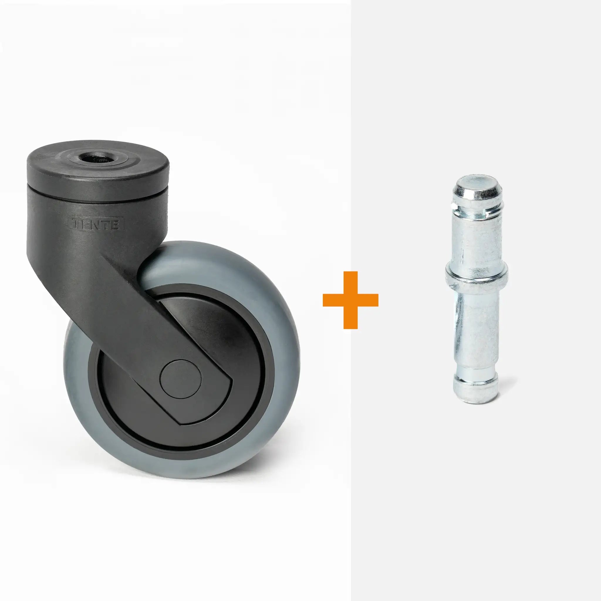 Design-Stuhlrolle mit 75 mm Durchmesser und Abdeckkappen, damit kein Schmutz zwischen die Rollen gelangt. Perfekt z. B. für den Einsatz in Friseursalon oder Zahnarztpraxis.